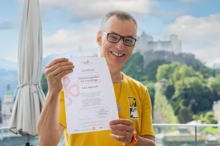 Wir gratulieren Uwe und allen anderen Absolventinnen und Absolventen ganz herzlich zum Lehrgangs-Zertifikats unserer kostenlosen Weiterbildungsreihe Werkzeugkoffer für Freiwillige!